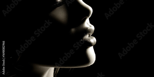 Artistic Silhouette of a Feminine Figure Highlighting Lips and Nose
