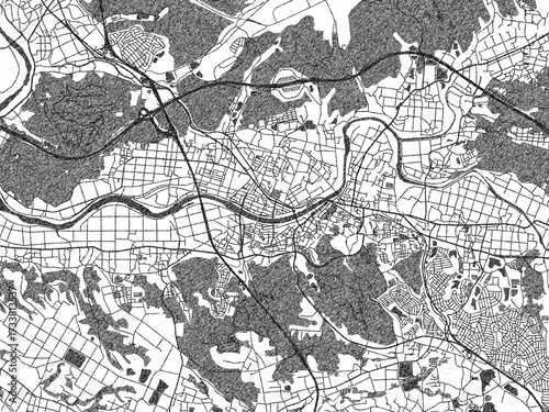 decorative, travel, street, japan, city map, urban, black-and-white, monochrome, map, minimal, illustration, home decor