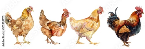 Artistic Watercolor Illustration of Chicken Set - Roasted and Fresh Poultry on White Background
