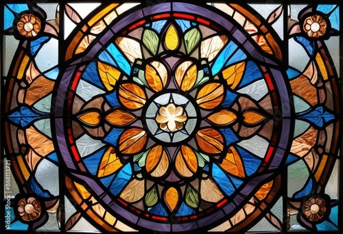 artwork with a kaleidoscope of geometric shapes in a stained glass style, showcasing a smooth color transition