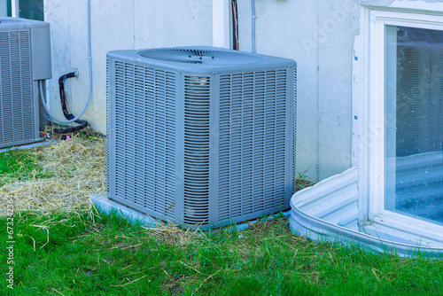 As result of construction of new house, an air conditioner is being installed outside to serve residential needs of residents