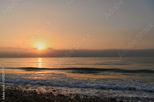 sunset, ocean, beach, pebble, wave, horizon, sky, calmness, evening, nature, serenity, relaxation, coastal, seascape, water, landscape, outdoors, scenic, beauty, peaceful, dusk, marin, environment, coastline, warmth, breezy, picturesque, horizon, twilight, natural, calm, charme, travel, escape, shore, wet sand, blissful