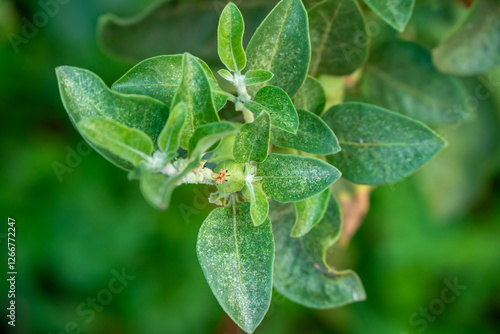 Ashwagandha plant or withania somnifera plant is ayurvedic medical plant close up