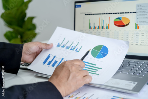 Asian accountant working and analyzing financial reports project accounting with chart graph in modern office, finance and business concept.