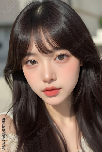 asian, woman, female, young, model, selfie, lady, girl, teenage, teenage, beautiful, gorgeous, pretty, attractive, sexy, natural, japanese, korean, chinese, eastern, fashion, fashionable, city, shopping, photo, picture, profile, closeup, closeup, make-up, make-up, outside, sunny, fats, lip, eye, long, hair, wavy, bang, cosmetic, salon, brunette, black, pink, clothing, clothes, beauty