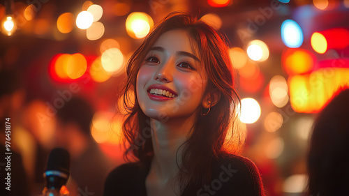 Asian beauty and cute ladies are talking with friends at Jazz bar.