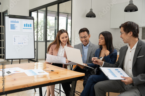 Asian Business Group Chat about graph work Present in meetings, in the office