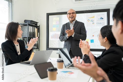 Asian business people team analyzing statistics financial. Group Team of ceo business man and woman Meeting Conference Discussion various topic. Executive professional managers Corporate in office.