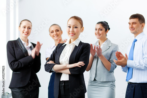 business, teamwork, team, corporate, caucasian, asian, standing, success, group, happiness, businesswoman, suit, businessperson, businessman, people, young, colleague, woman, happy, formal, partnership, white, arm, boss, smile, partner, company, cooperation, staff, elegant, executive, shirt, 5, together, smiling, applause, manager, hand, crossed, confidence, meeting, photogenic, attractive, career, promotion, winner, congratulation