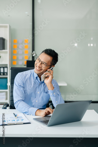 Asian businessman typing laptop and tablet Placed at the table at the office.