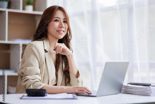 Asian businesswoman working on laptop computer and graph planning a strategy in modern office, Asian woman doing analyzing the financial report, business plan investment, finance analysis concept