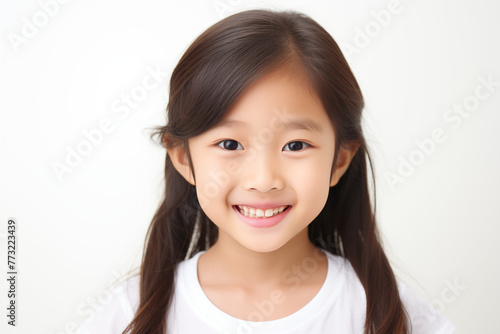 Asian child girl with white background. Nursery school. Childhood professions. School holidays. Topics related to childhood. Chinese girl. Japanese girl. Asian country. China. Asia. Japan.
