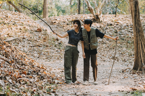Asian couple sweet in tent inside on they camping trip, traveller relax and sleep togather in out door and camping trip