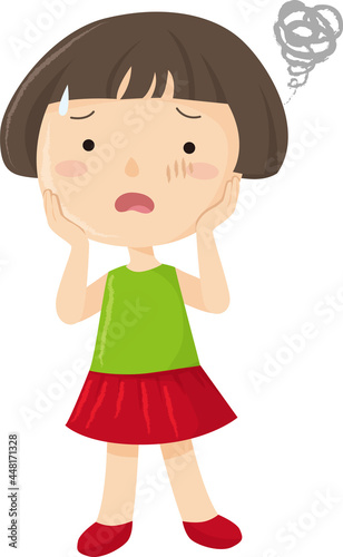illustration, vector, pretty, girl, surprised, expression, children, toddler, asia, white background, character, illustration, cartoon, alarmed, shock, training, problem, people, skirt, hesitate, red, green, japan, korea, china, east asia