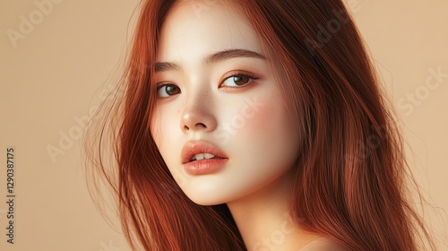 Asian Hair Model for Advertising Hair Care. Beautiful portrait of a young woman with hair.