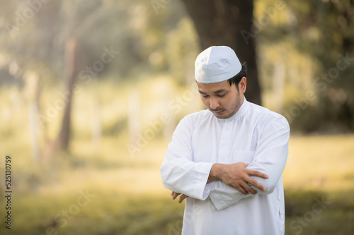 Asian islam man prayer,Young Muslim praying,Ramadan festival concept