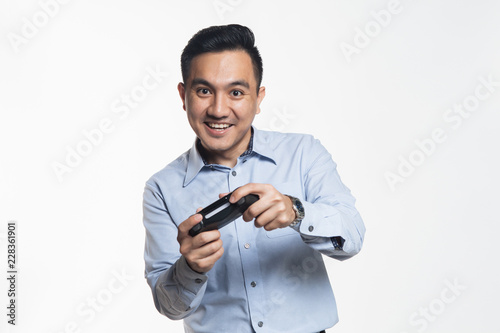 adult, asian, background, business, businessman, casual attire, chinese, console, controller, expression, face, finance, formal, friendly, game, gamer, gaming, good-looking, hand, happy, hard, human, isolated, japanese, malay, malaysian, male, man, modern, office, online, person, play, playful, portrait, positive, professional, serious, smile, staff, standing, studio, style, suit, white, white-collar, winning, work, men at work, young
