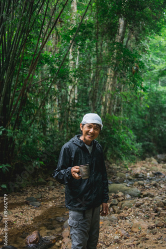 working, work, wild, travel, stream, stone, smile, portrait, pause, mug, man, journey, green, fresh, forest, drink, dog, cup, hot drink, break, black, bamboo, asian, artist, male, person, people, adult, adult, 50s, grown-up, middle-aged