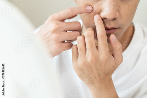 Asian men worry about acne on their faces when looking in the mirror