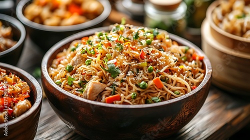 noodle, asian, food, chicken, bowl, vegetable, meal, cookery, wooden, delicious, rice, dish, closeup, cooked, table, dinner, lunch, epicure, fresh, healthy, eatery, plate, oriental, served, tasty, receipe, preparation, ingredient, appetence, traditional, favor, diet, nourishment, eating, culinary, variety, grain, spicey, seasoning, macro, texture, background, studio, presentation