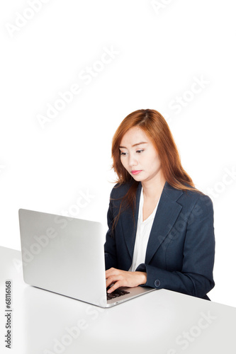Asian office girl working on labtop