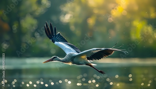 avian, flight, wetland, green, ornithology, water, bird, bokeh, feather, wing, wildlife, duck pond, background, golden hour, stork, sunset, lake, blur, beak, nature, sunrise, flying