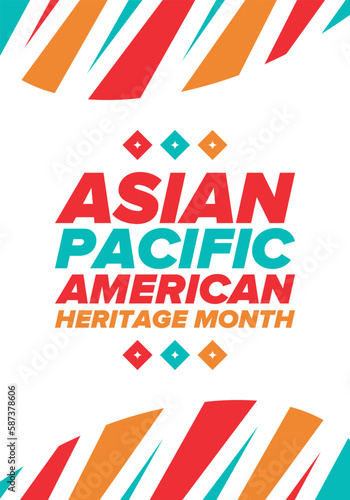 Asian Pacific American Heritage Month. Celebrated in May. It celebrates the culture, traditions and history of Asian Americans and Pacific Islanders in the United States. Poster, card, banner. Vector