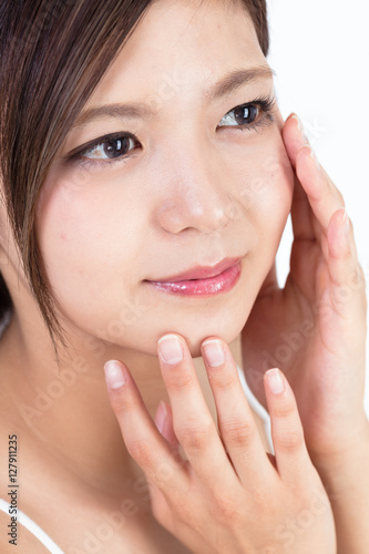 asian, este, skincare, natural, beauty, portrait, make-up, lifestyle, white, copy space, relax, alone, chinese, people, make-up, woman, japanese, light, clean, smile, bare skin, beauty, cosmetic, brown-haired, appealing, shortcut, okinawa