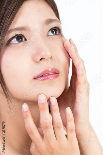 asian, este, skincare, natural, beauty, portrait, make-up, lifestyle, white, copy space, relax, alone, chinese, people, make-up, woman, japanese, light, clean, smile, bare skin, beauty, cosmetic, brown-haired, appealing, shortcut, okinawa