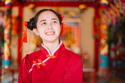 Asian woman in cheongsam on the Chinese New Year festival.