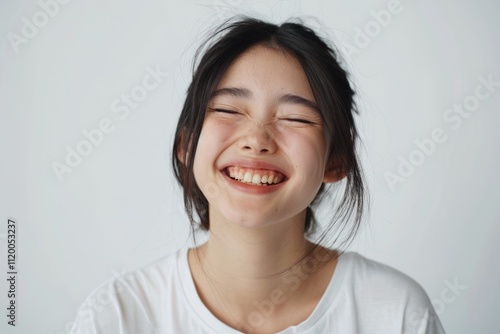 asian, woman, happy, teenage, background, business, people, isolated, wall, girl, hair, white, smile, student