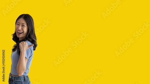 woman, finger, pointing, click, follow, young, optimistic, girl, smile, background, lifestyle, skin, model, advertising, fun, beautiful, gesture, positive, mood, choice, symbol, female, smiling, toothy, hand, portrait, adult, advertisement, studio, advert, direction, recommend, promo, advise, up, guide, announcement, pretty, feeling, posing, asian, inviting, recommended, link, space, promotion, filed, apply