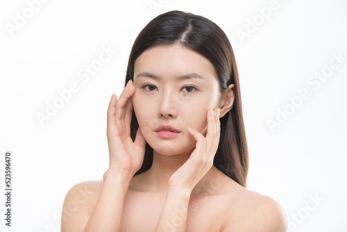 Asian woman portrait on white background, face care, face care, facial treatment, cosmetology, beauty and spa