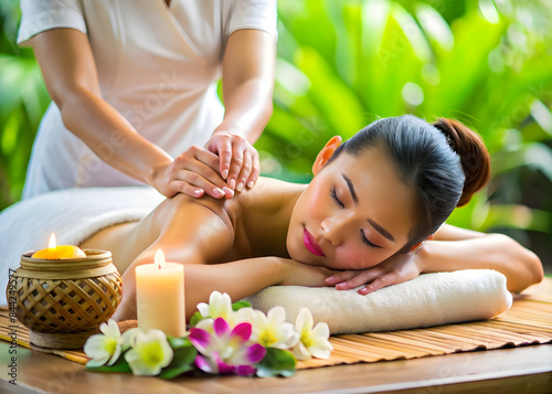 Asian woman relaxing with spa massage.