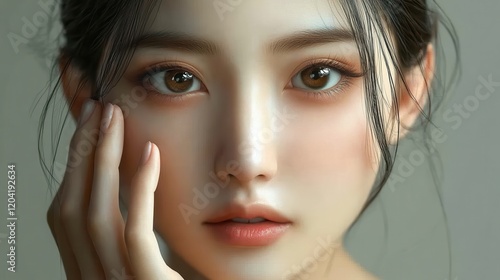 asian, woman, face, touching, beauty, skincare, delicate, elegant, serene, calm, gentle, portrait, cosmetic, attractive, young, lovely, pretty, closeup, natural, peaceful, hand, beauty treatment, skincare, calmness, femininity, relaxation, radiant, charme, wellness, tenderness, grace, ethnicity, glamour, health, pampering, peacefulness, sensitive, gentleness, harmony