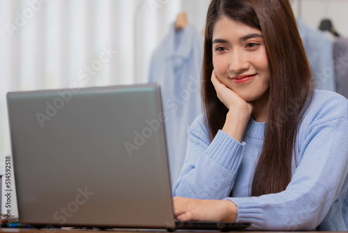 Asian working woman is working on her labtop Working from home with relax.