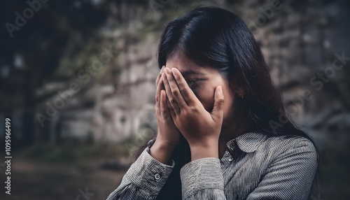 horizontal, one person, photo, woman, young adult, covering, people, portrait, adult, human face, adults only, female, hiding, missy, cut-out, fear, color image, shy, siam, human hand, eye, human head, closeup, beauty, hand, emotional stress, anxiety, sorrowful, worried, head, looking, peeking, concept, emotion, finger, frustration, gesticulate, head shot, horror, idea, indoor, islam, lifestyle