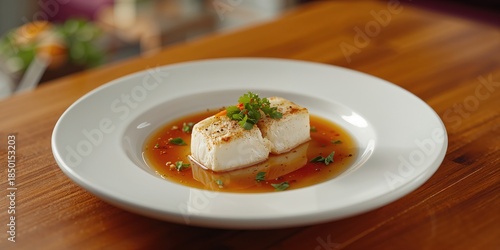 Asian-style white fish fillet seasoning and plating for food display
