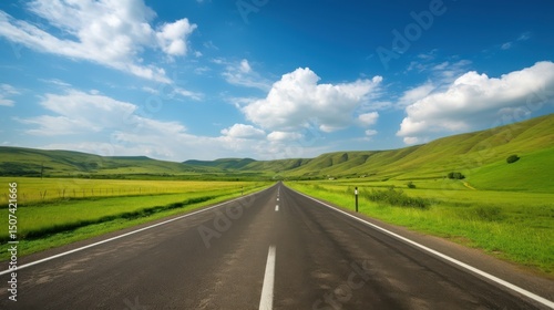 road, highway, asphalt, country, rural, landscape, hill, mountain, green, grass, field, meadow, sky, cloud, blue, summer, nature, travel, journey, open, horizon, scenic, route, driving, adventure, freedom, way, path, destination, rolling, beautiful, idylli, serene, peaceful, countryside, field, cloud, line, speed, land, straight, street, transportation, empty