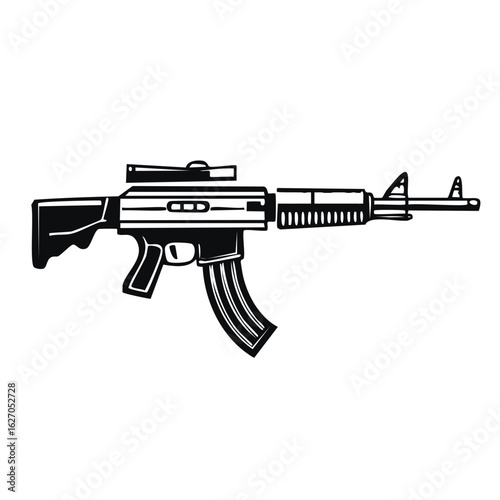 Assault Rifle Illustration Icon Black and White Modern Weapon Firearm Safety Concept