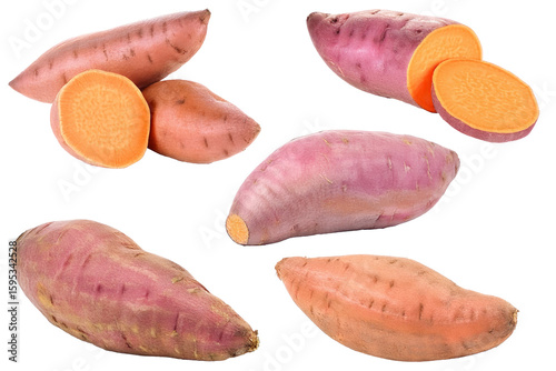 food, isolated, vegetable, sweet potato, sweet, fresh, healthy, raw, red, organic, set, agriculture, slice, brown, collection, ingredient, meal, nourishment