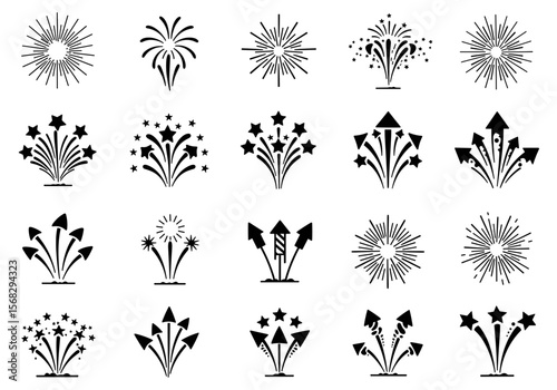 fireworks, rocket, silhouette, set, vector, illustration, black, explosion, celebration, holiday, event, party, festive, graphic, element, design, symbol, pyrotechnic, burst, light, night, sky, happy, new, year, independence, day, festival, show, explode, effect, sparkle, entertainment, fireworks, kit, icon, collection, clip art, drawing, abstract, simple, minimal, shape, diagram, signs, pictogram, logotype, isolated