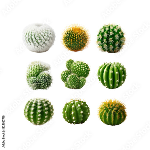 cactus, succulent, plant, desert, round, prickly, nature, flora, green, spiky, isolated, arrangement, collection, botany, tropical, variety, texture, garden, botanical, white, yellow, closeup