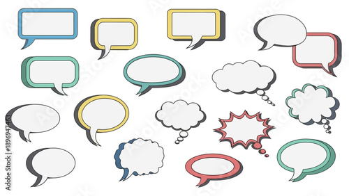 Assorted Colorful Speech Bubbles with Outlines, Shadows, and Various Shapes
