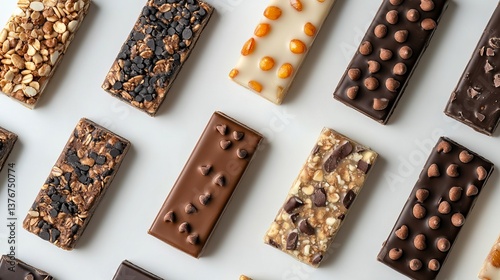 Assorted Delicious Gourmet Chocolate Protein Bars Healthy Snack Variety Pack Sweet Treats Top View Photography Studio Shot Background Image food nuts