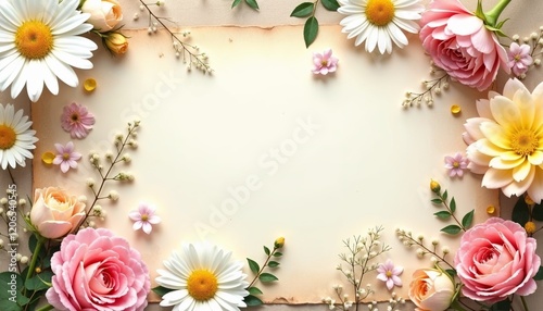 daisy, rose, floral, border, frame, pastel, colourful, nature, decoration, arrangement, blossom, flower petals, greenery, romantic, soft, feminine, wedding, spring, celebration, beauty, delicate, garden, blooming, creative, vibrant, design, natural, fresh, love, invitation, greeting, anniversary, event, tender, stylish, symmetric, elegance, artistic, decorative, charming, no people