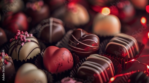 Assorted gourmet chocolate truffles in luxurious selection displaying variety and detail with decorative presentation. Indulgence and gourmet confectionery.