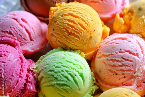 Assorted ice cream scoops showcasing a delightful mix of colors and flavors