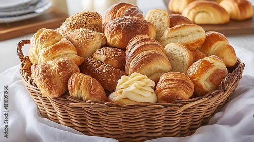 pastry, croissant, bread, baked, bakery, delicious, food, breakfast, dessert, sweet, gold, brown, fluffy, flaky, buttery, crusty, morning, treat, meal, cookery, eat, tasty, fresh, homemade, oven, wheat, flour, dough, yum, deliciously, snack, bite, confectionery, bun, delight, epicure, artisan, variety, selection, collection, display, basket