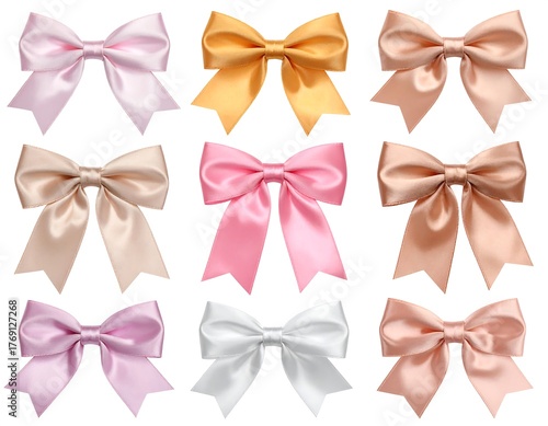 Assorted satin bows in various pastel and neutral shades